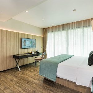 This boutique resort is designed around the gentle contours of the hillside, unfurling along the pristine beachfront. The contemporary guest rooms with luxury furnishings and natural tones offer a warm welcome. Many take full advantage of the elevation offering magnificent views of the Andaman Sea, while others offer perks such as direct pool access.
