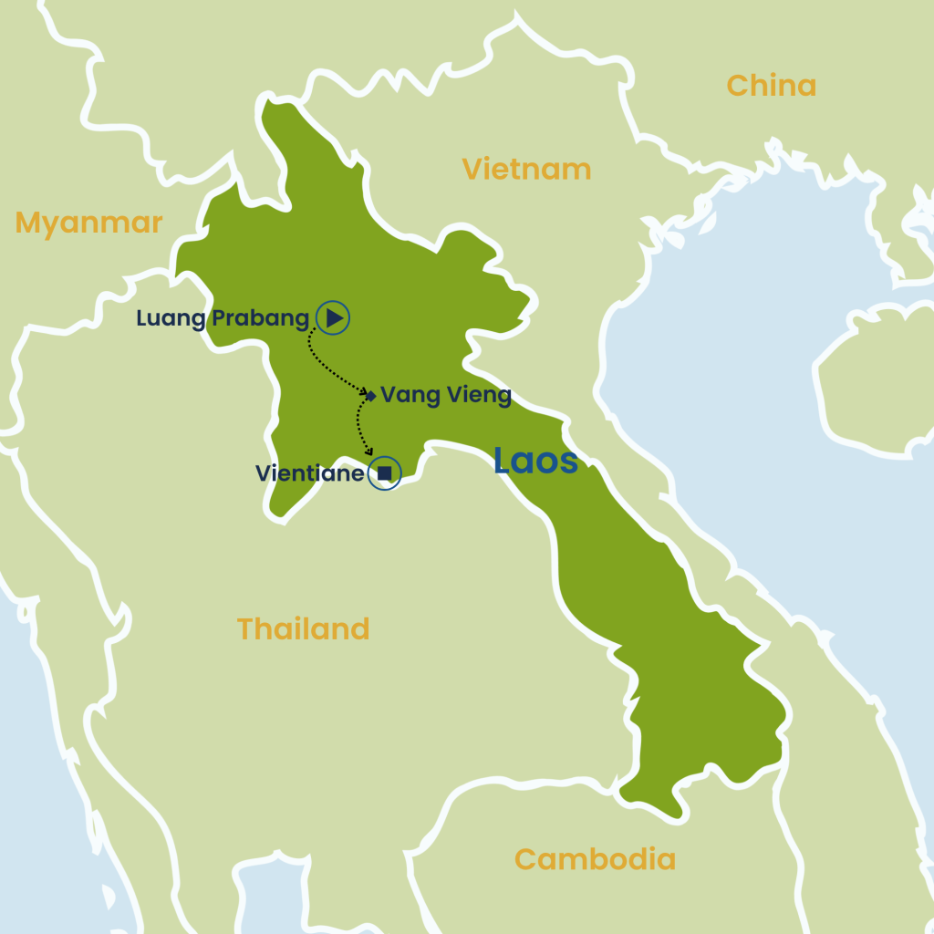 Embark on a 6-day journey through Laos, starting in Luang Prabang. Explore the vibrant morning market, the National Museum, and the stunning Wat Xienthong temple. Cruise the Mekong River at sunset and visit the breathtaking Kuang Si Waterfall and Bear Rescue Centre. Travel through scenic mountains, visiting Hmong villages on the way to Vang Vieng, known for its dramatic limestone cliffs and rivers. In Vientiane, discover the relaxed capital with its colonial charm, glittering temples, and iconic landmarks like the Phatuxay Monument. Conclude your adventure with a peaceful stroll along the Mekong River before departure.