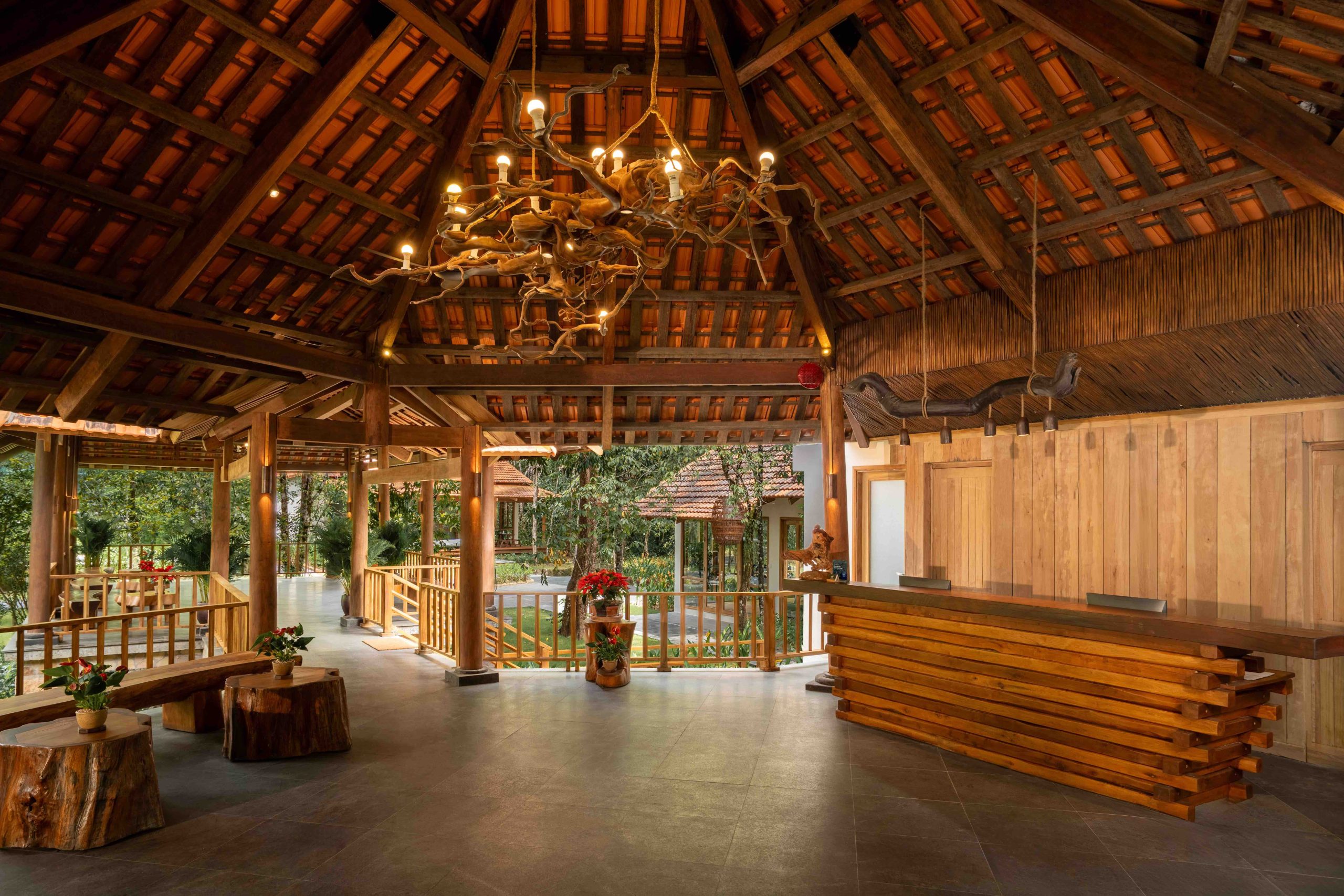 Set in a tranquil garden, the 115 sqm Green Villa blends rainforest beauty with traditional Vietnamese design. Handcrafted details and natural surroundings create a serene and authentic retreat.