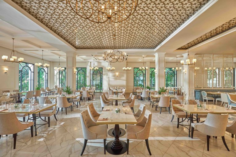 All-day dining restaurant serving international and Vietnamese cuisine with buffet and à la carte options in a modern setting.
