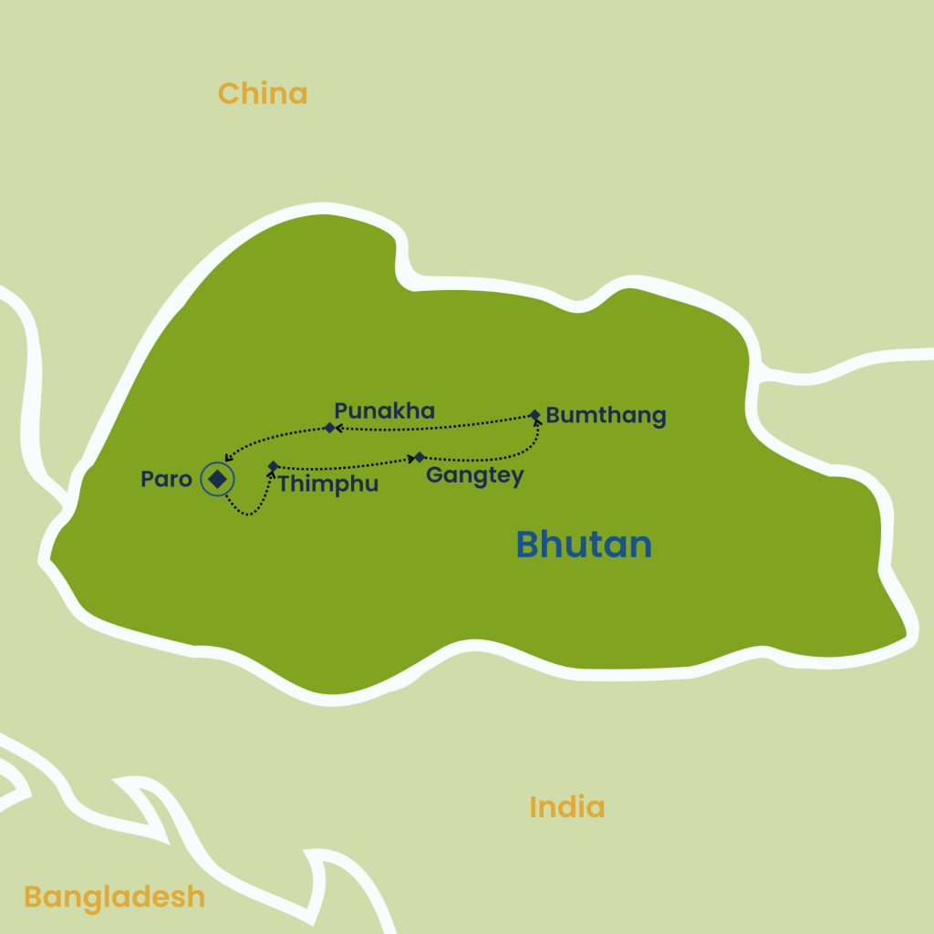 After breakfast, transfer to the airport for your onward journey. As you leave the valleys and mountains behind, you’ll carry with you the colors of Bhutan’s festivals, the calm of its monasteries, and the warmth of its people - memories to revisit long after the trip ends.