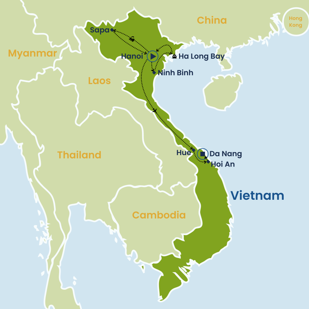 Embark on a captivating 11-day journey through Vietnam. Begin with an overnight train to Sapa and explore its stunning landscapes and ethnic villages. Discover Hanoi’s rich heritage, then venture to Ninh Binh’s dramatic karst scenery and cruise Halong Bay’s emerald waters. Travel to Hue, visiting royal tombs and ancient pagodas, before crossing the scenic Hai Van Pass to Hoi An. Enjoy a bike tour of Cam Kim Island or a walking tour of Hoi An’s well-preserved Old Town. Conclude in Danang or continue your adventure. Highlights include Fansipan Cable Car, Halong Bay cruise, and Hoi An’s historical charm.